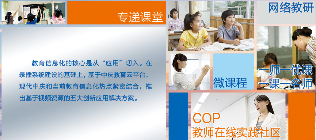 除了提供专业的录播教室建设和解决方案,现代中庆五大典型应用也将在展会上同步亮相。针对专递课堂、网络教研、微课程、一师一优课、一课一名师、教师专业成长等时下最热门的教育热点,现代中庆推出了基于录播系统和教育云平台的五大解决方案,以应用为导向,辅助学校或区域有针对性得推进教育信息化建设,实打实助力信息技术与教育教学的深度融合。