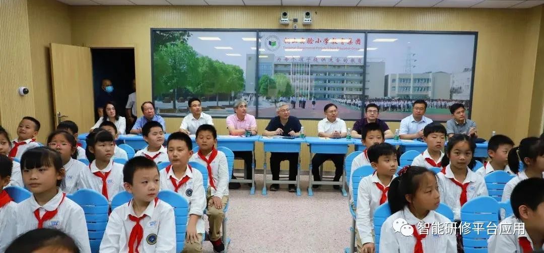 9月28日下午,调研组在铜山区实验小学观摩了基于互联网直播环境的城乡结伴互动课堂教学,以及智能研修平台的安装部署情况。